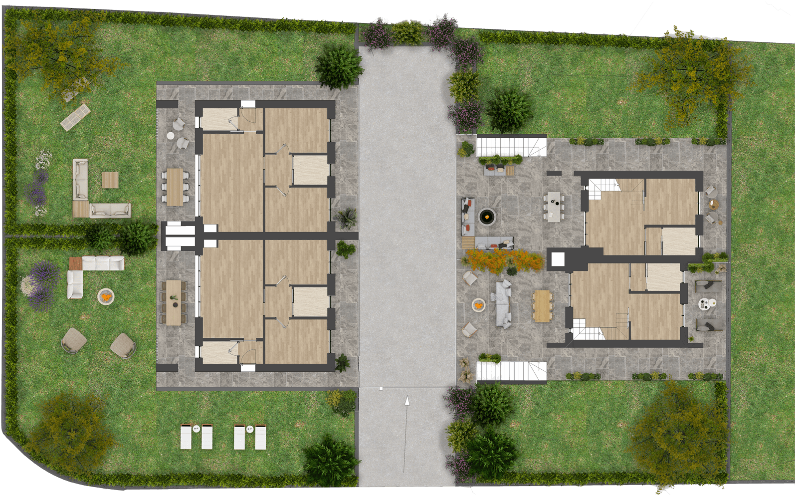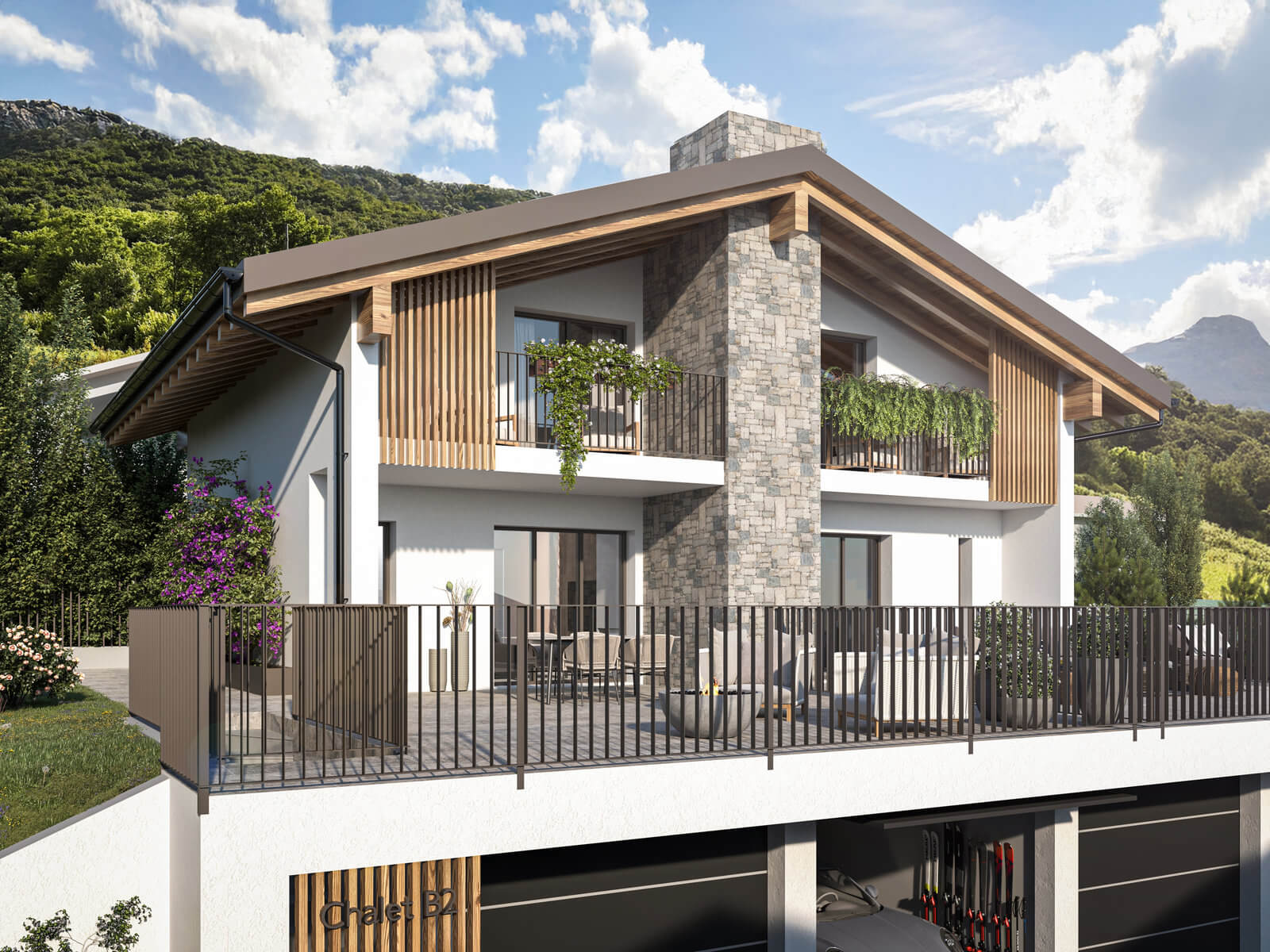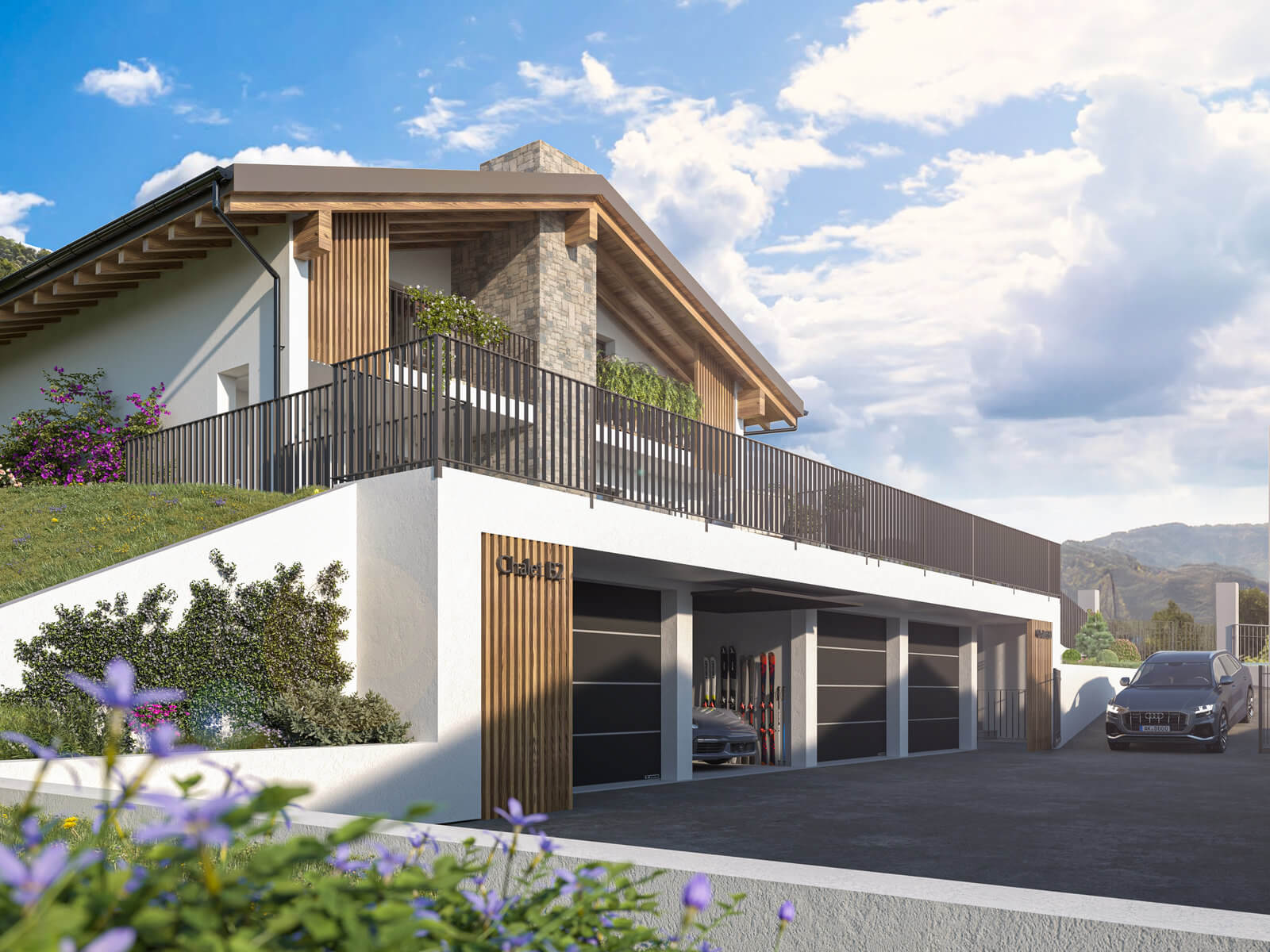 Il nuovo intervento residenziale propone quattro chalet indipendenti, progettati per offrire comfort, privacy e un’elevata qualità abitativa immersa nella natura. Ogni abitazione è dotata di garage privato e di ampi spazi esterni che valorizzano la vita all’aria aperta.